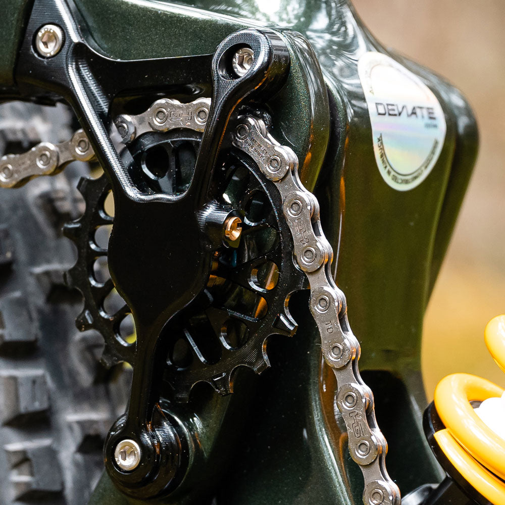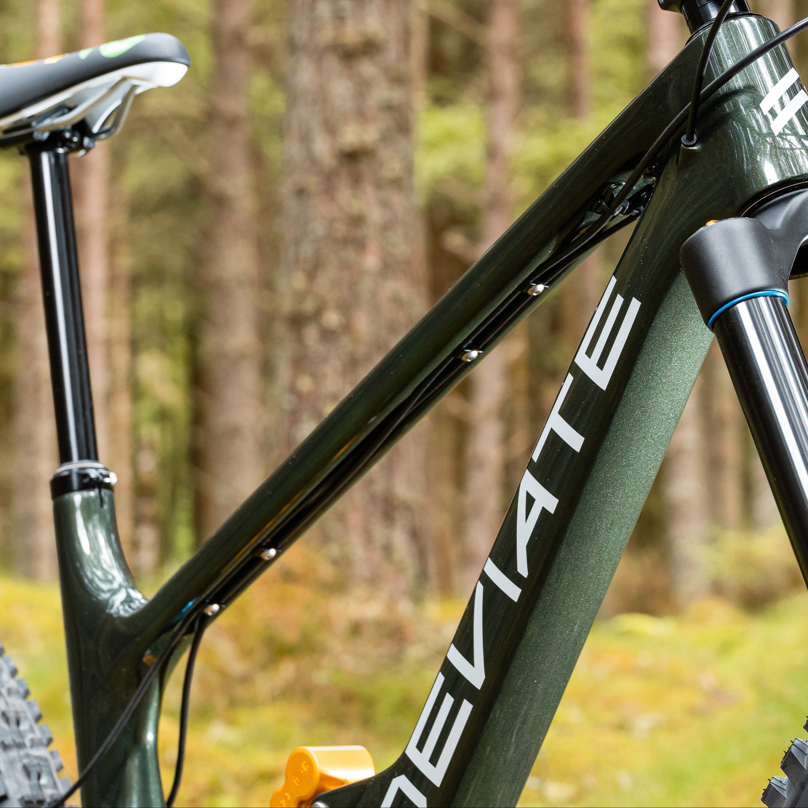 The Deviate high pivot point suspension systems provide a smoother, more confidence-inspiring ride by minimising pedal kickback and maintaining momentum over rough terrain. The rearward axle path effectively absorbs square-edge impacts, preserving speed and control, while geometry conservation under braking ensures stability and keeps the rider in the ideal position for tackling challenging obstacles.