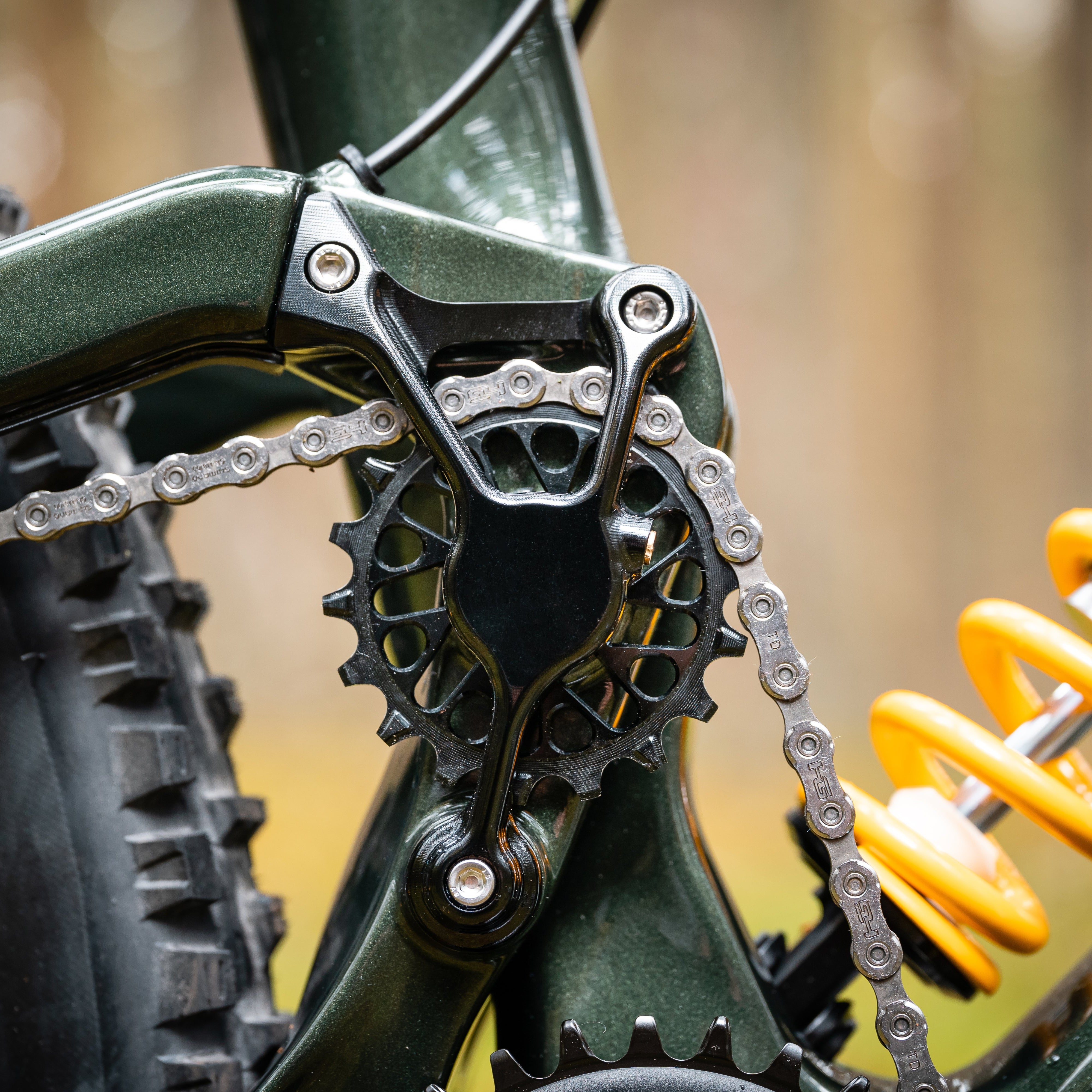 The idler’s carefully positioned placement, combined with a 3-point side cover connection, ensures optimal suspension performance, stiffness, and extended bearing life.